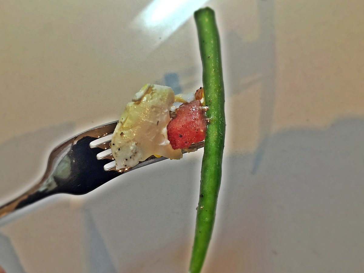 Green Beans with Kielbasa_bite on a fork_3.1.16 Published March 7, 2016 at 3264 × 2448 in Green Beans with Kielbasa, Pepper, and Poached Egg Next →