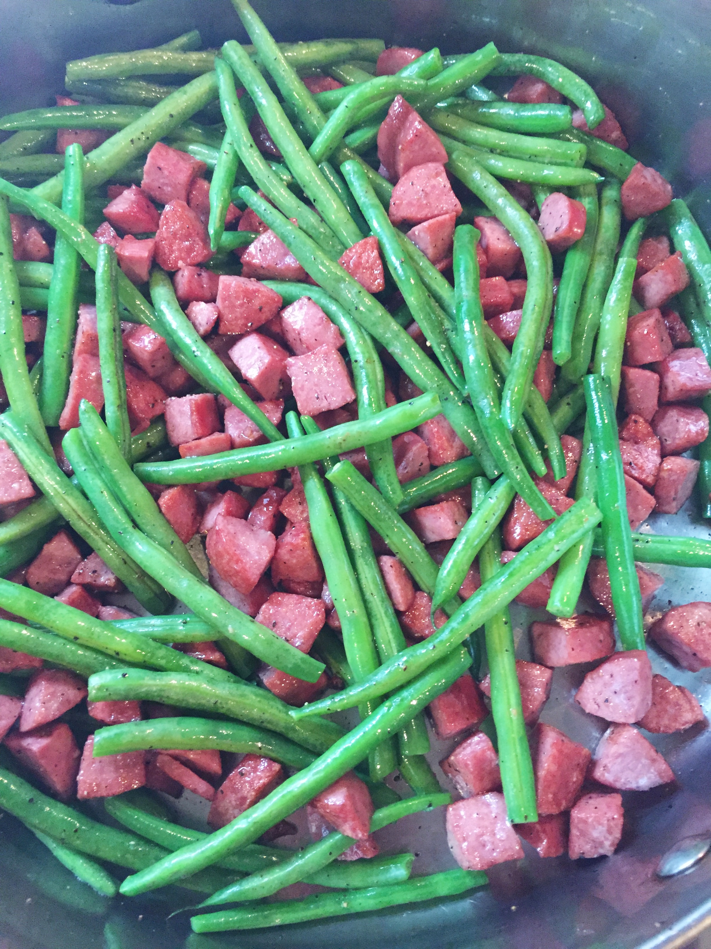 Green Beans with Kielbasa_Cooked_3.1.16 Published March 7, 2016 at 2448 × 3264 in Green Beans with Kielbasa, Pepper, and Poached Egg ← Previous